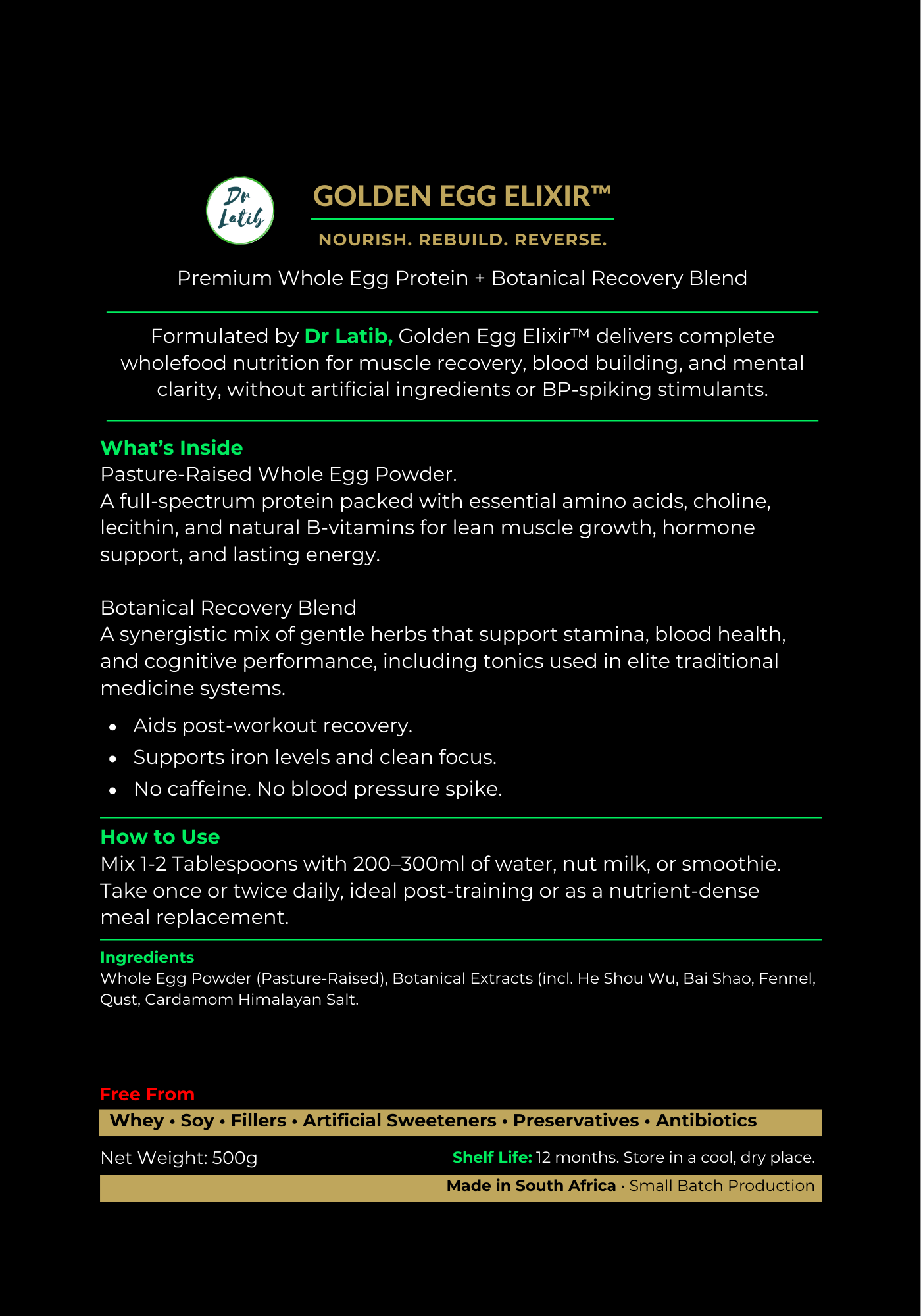 Golden Egg Elixir™ was developed by renowned natural medicine expert Dr. Latib, in response to the increasing number of patients suffering from chronic fatigue, poor iron absorption, weak digestion, premature aging, and postnatal depletion. The formula is a modern, clinically safe blend of traditional food wisdom and functional medicine — backed by decades of practice.